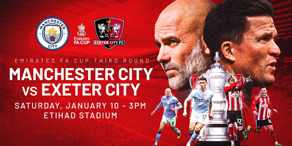 Exeter City's Emirates FA Cup third round clash with Premier League side Manchester City will take place on Saturday, January 10 in a 3pm kick-off.