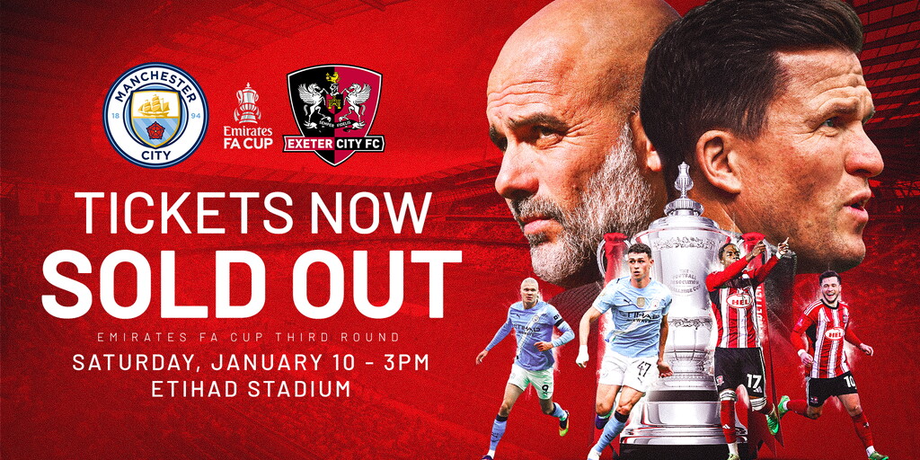 Tickets for Exeter City's Emirates FA Cup third round clash with Premier League side Manchester City are now SOLD OUT!