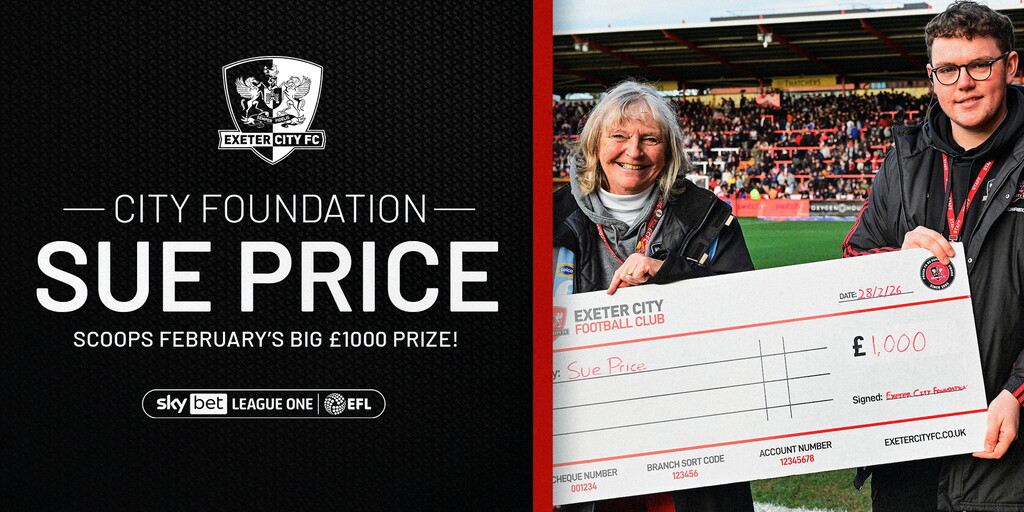 The Exeter City Foundation main winner for February is someone well known to many supporters through her work as a match day ambassador, Sue Price, who has won the £1,000 first prize.
