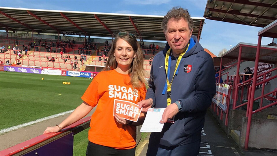 The Sugar Smart Exeter team attended the Exeter City match against Yeovil Town to talk to fans about sugar and raise awareness of the risk eating high amounts of sugar brings to our health.