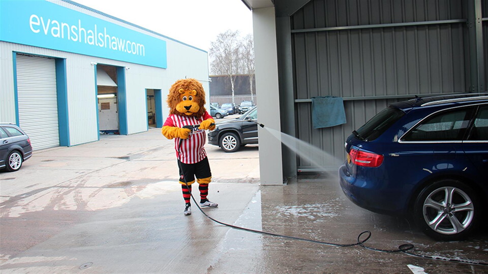 Exeter City Football Club’s mascot, Grecian the Lion, recently visited the brand-new Evans Halshaw Car Store in Marsh Barton, Exeter, to help the team for a day.Grecian helped at reception and the service department, where he undertook several roles, including: appraising a car, washing a car, and taking some models out for a test drive. There was even time for the local mascot to pose for a few photographs with team members and some of the cars.