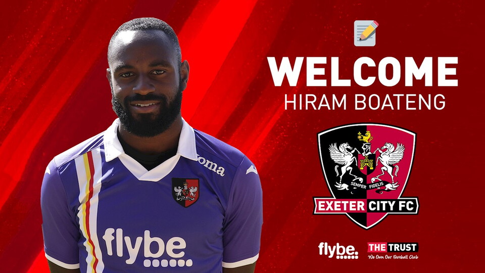 Hiram Boateng says he is delighted to join Exeter City, on a permanent deal from Crystal Palace, and is looking forward to pushing the team towards promotion this season.