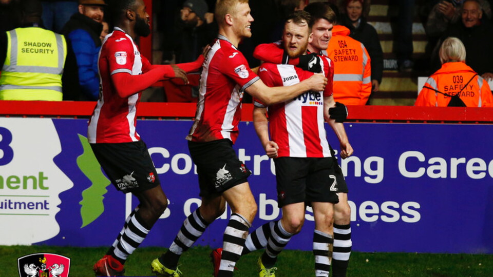 Exeter City: Pym, Tillson, Holmes (McAlinden, 76), Stockley, Moore-Taylor, Seaborne, Jay (Harley, 64), Moxey, Wilson, Taylor, Boateng (Archibald-Henville, 90+4)