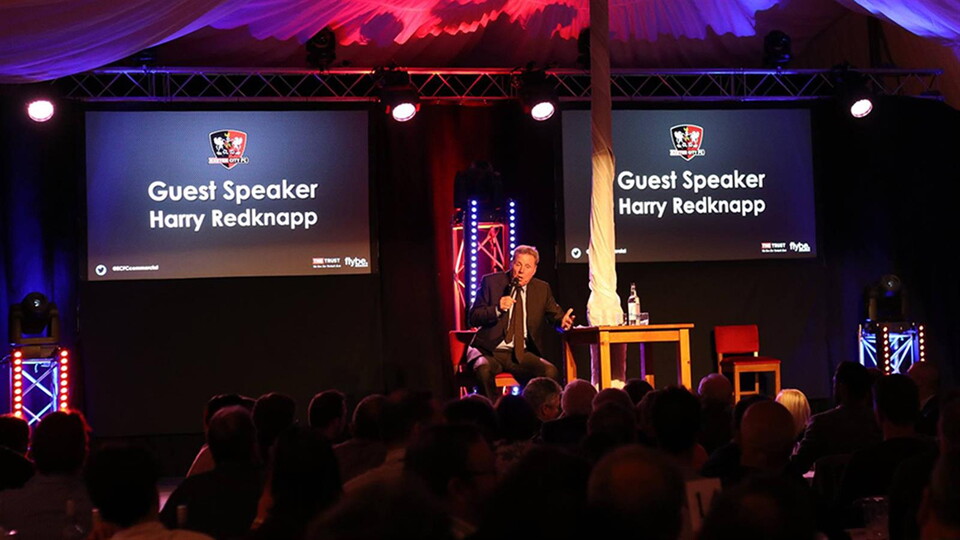 Exeter City hosted an Evening with Harry Redknapp in the grand marquee at St James Park On Thursday, April 27.Over 400 guests including fans, sponsors, staff and players came together in the grand marquee for an evening with the current Birmingham City manager.