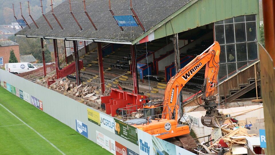Preparation work around the stand started this week, with the removal of the buildings adjacent to the stand, and the old floodlight poles, and netting to the right of the stand. The internals have also already been stripped to allow for quick progress with the demolition.