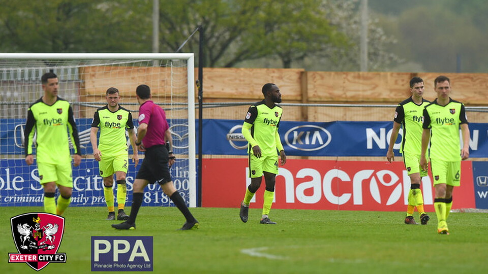 Exeter City: Pym, Sweeney, James (Harley, 73), Tillson, Simpson (Edwards, 58), Stockley, Moxey (Wilson, 45), Croll, Taylor, Storey, Boateng