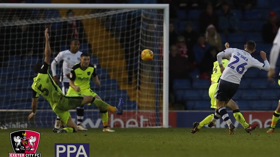 Exeter City: Pym, Sweeney, Woodman (Moxey, 59), O’Shea, A. Martin, Tillson (L. Martin, 65), Law, Holmes, Stockley, Ogbene (Forte, 81), Taylor