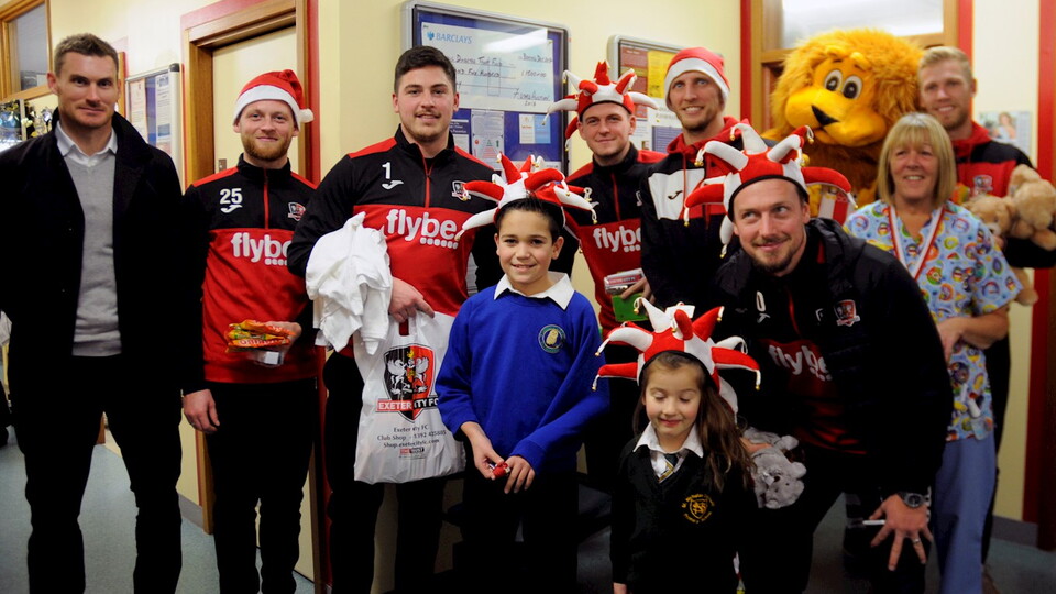 Exeter City Football Club’s first-team players took time out of their busy training schedule to visit children and teenagers on the ward – some of whom will be spending the festive period in hospital.
