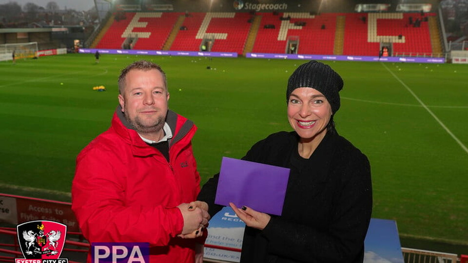 At Saturday's match against Crewe Alexandra, Kevin was presented by with his prize of return flight vouchers by Flybe's director of communications Maja Gedosev. Kevin will also be invited to City's end-of-season awards where the overall winner will be crowned.