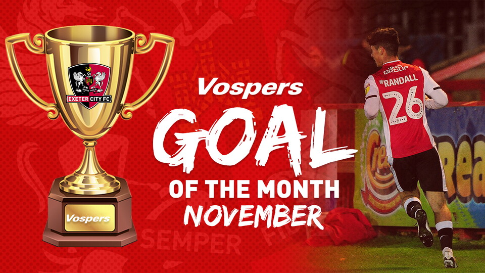 Exeter City youngster Joel Randall's strike against Bristol Rovers in the Checkatrade Trophy on Tuesday, November 13 at St James Park has been voted YOUR Vospers' Goal of the Month for November.