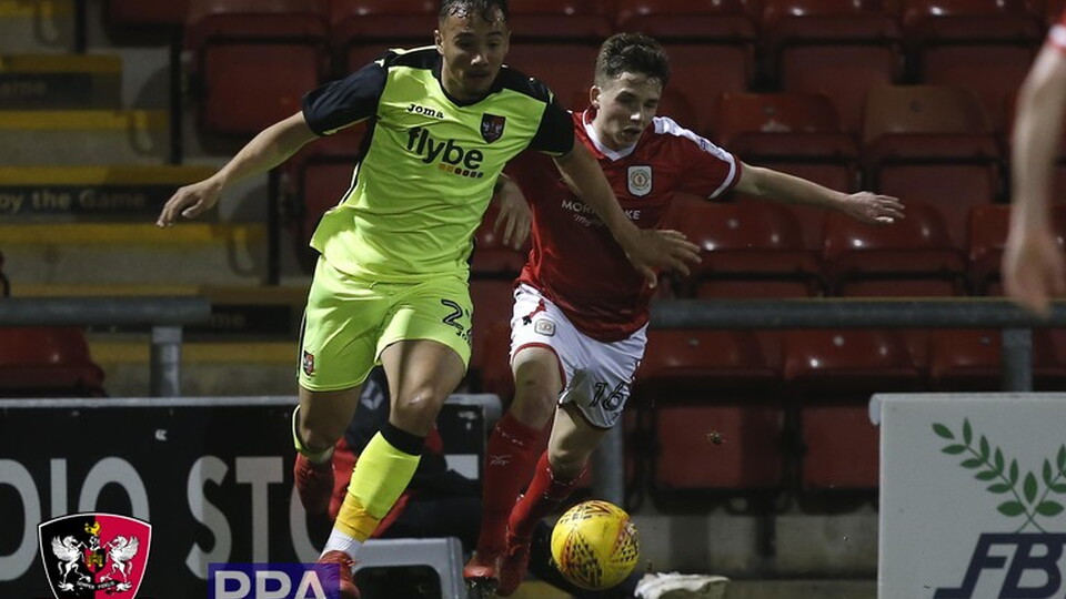 Exeter City: Pym, Woodman, Archibald-Henville, Tillson, Harley, Holmes, Stockley, Moore-Taylor, Wilson, Edwards, Boateng