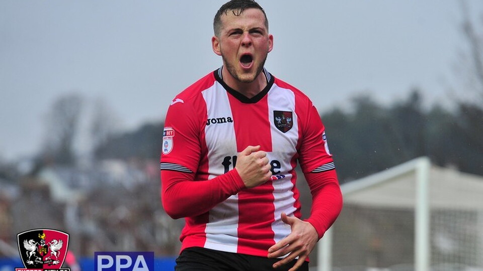 Exeter City: Pym, Sweeney, Woodman (Archibald-Henville, 78), Tillson, Stockley, Jay (Edwards, 80), Moxey, Wilson (James, 90), Taylor, Storey, Boateng