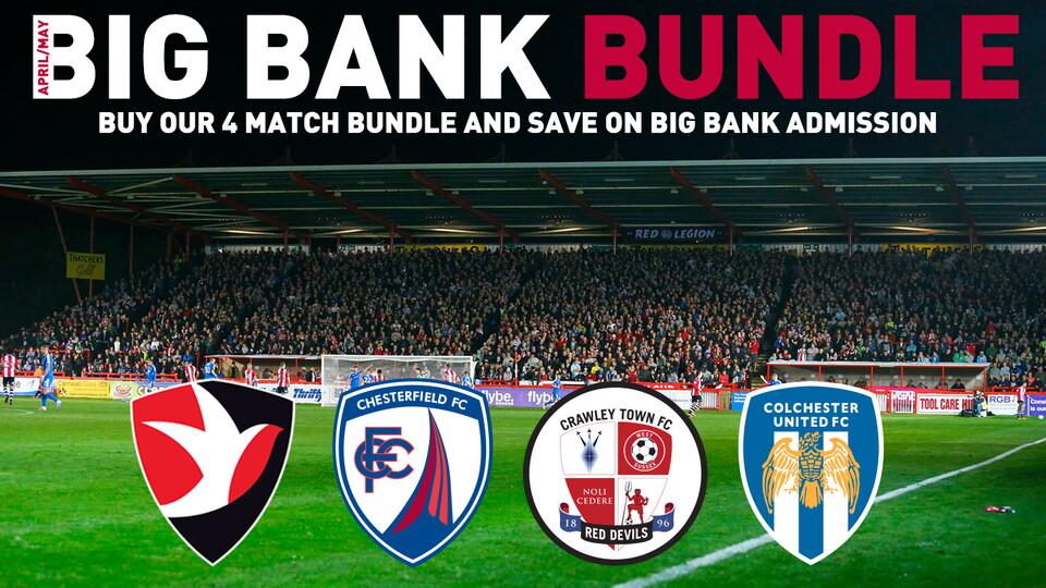 The discounted bundle of tickets is for the Thatchers' Big Bank (only) with the package for adults costing just £56, a saving of £14 on matchday prices. Seniors and Students pay £40, which is an £16 saving. Under-18s pay just £12 which is a £4 saving.
