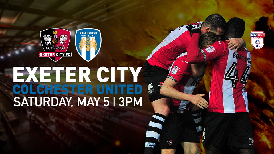 Exeter City's final scheduled league match of the 2017/18 EFL Sky Bet League Two campaign is against Colchester United on Saturday, May 5 in a 3pm kick-off.