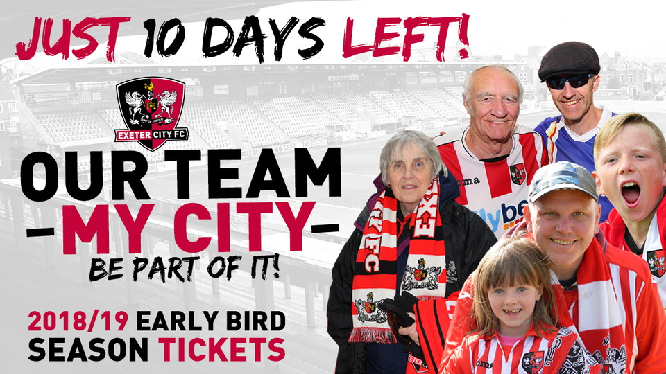 There are just 10 days left of the Early Bird period for supporters to sign up to watch the Grecians at St James Park during the 2018/19 season for the lowest price.