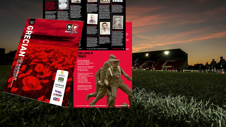 Last weekend marks the 100th anniversary since the end of World War One and the club have recognized this in the programme, with a special poppy-inspired front cover and articles from Will Barrett, Aidan Hamilton and Ben Strange remembering all the Exeter City players who lost their lives in the conflict.