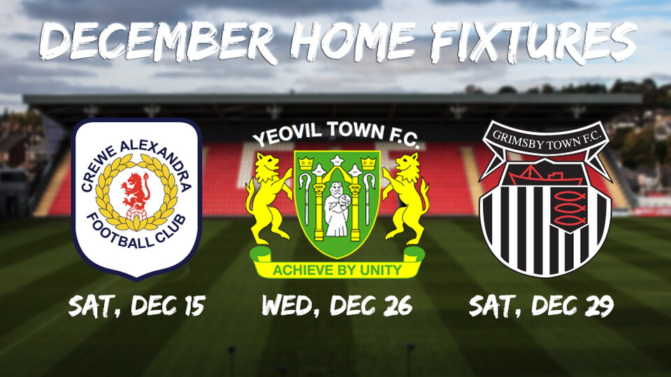 - Saturday, December 15 | Crewe Alexandra | 3pm