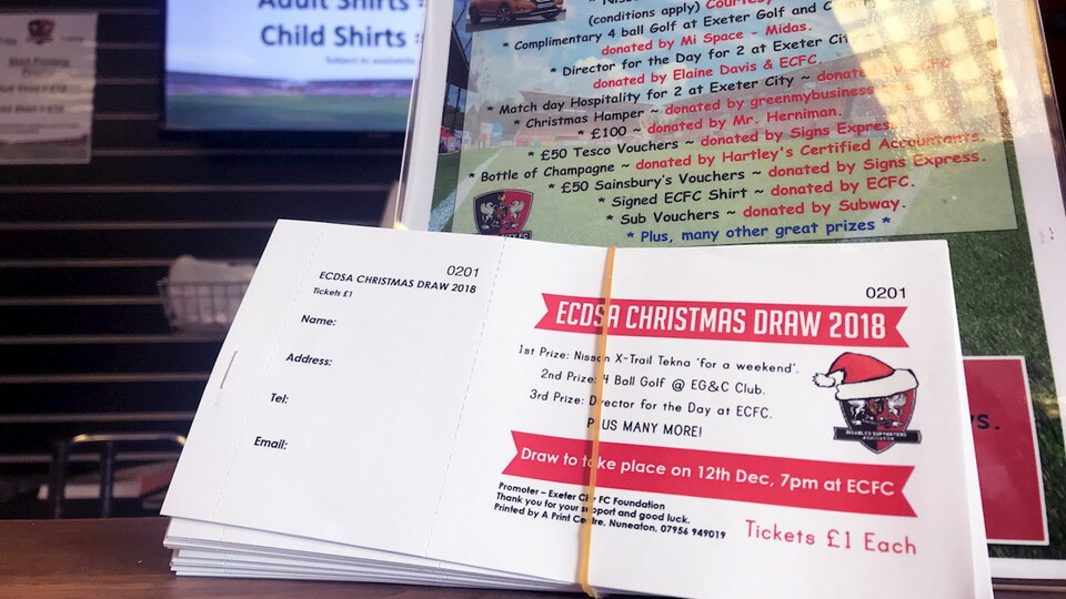 Tickets for the Exeter City Disabled Supporters Association 'Grand Christmas Draw' are now available from Reception at St James Park or outside the Club Shop on matchdays, priced at Β£1 per ticket.