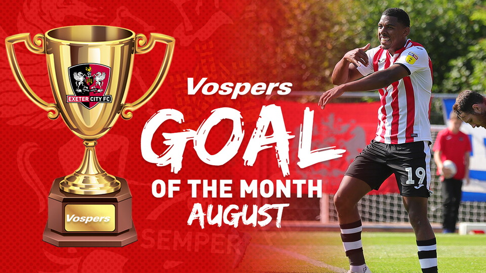 City striker Tristan Abrahams goal against Carlisle United on Saturday, August 4 at St James Park has been voted YOUR Vospers' Goal of the Month for August.