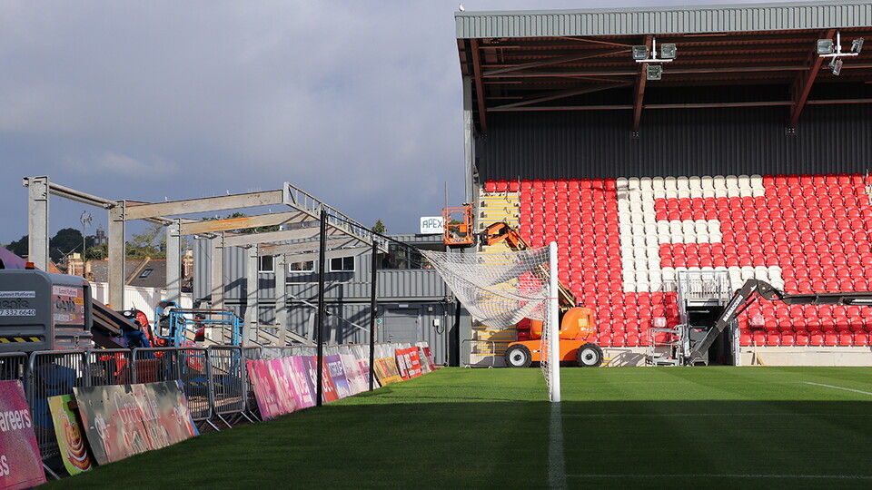 - The bases for the Away Stand have been exposed and drilled and the erection of the frame for the Away Stand has started.