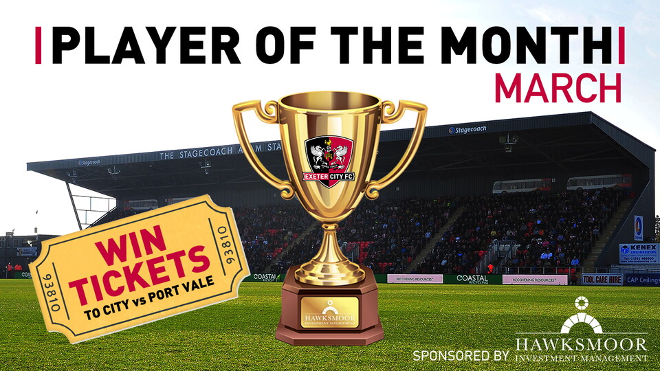 Here is your chance to win a pair of Thatchers' Big Bank tickets for City's match against Port Vale on Saturday, April 13 by simply voting for your Hawksmoor Investment Management Player of the Month for March.