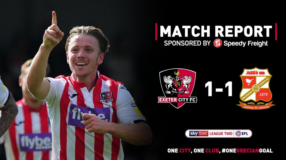 A late goal from Eion Doyle prevented Exeter City from maintaining their perfect start to the season in a 1-1 draw at home to Swindon Town.