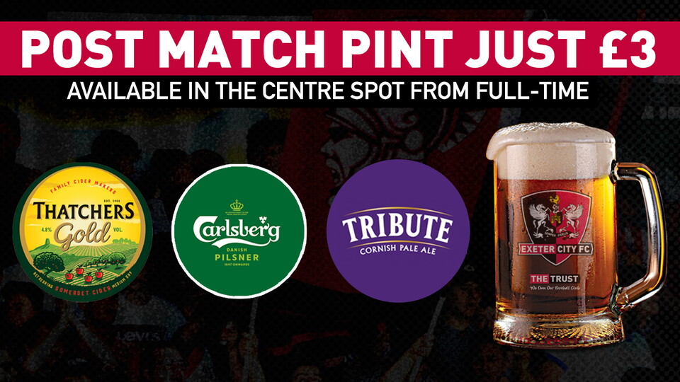 Following the full-time whistle, prices for pints of Carlsberg, Thatchers and Tribute will be reduced to £3 until the bar closes.