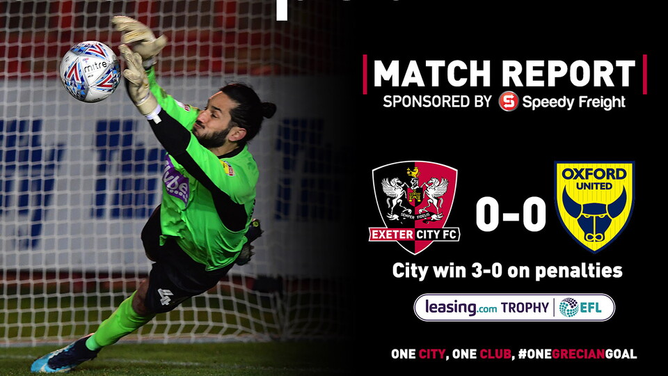 Three consecutive penalty saves from Dino Visser in the shoot-out saw Exeter City emerge winners against Oxford United in the second round of the Leasing.com Trophy on Wednesday night. The game had finished 0-0 after 90 minutes.