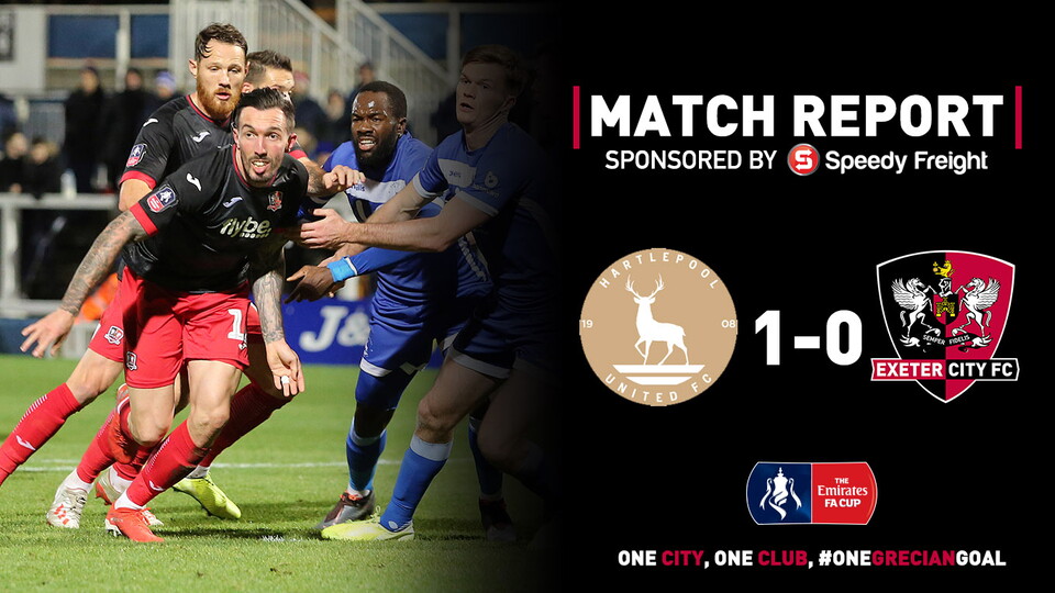 Exeter City exited the Emirates FA Cup at the second round stage as they fell to a 1-0 defeat at Hartlepool.