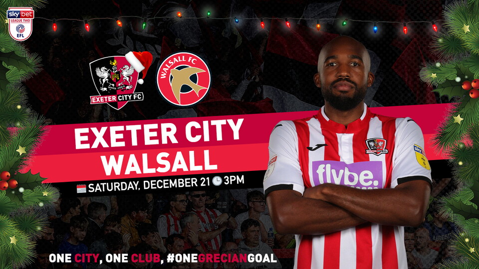 Exeter City return to EFL Sky Bet League Two action at the Park on Saturday, December 21 against Walsall in a 3pm kick-off.