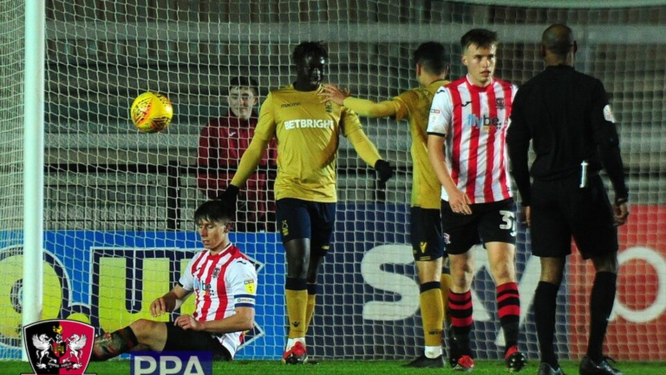 Exeter City's under-23s were beaten 5-0 by Nottingham Forest in the Under-23 Premier League Cup.