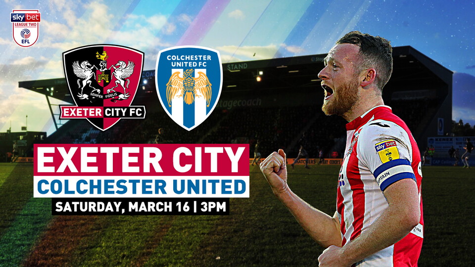 After away trips to Northampton Town and Macclesfield Town, the Grecians return to action at SJP to face Colchester United in a 3pm kick-off on Saturday, March 16.