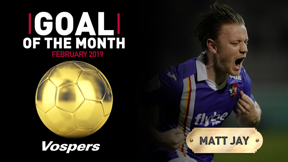 Matt Jay's stunning strike against league leaders Lincoln City on Tuesday, February 26 has been voted YOUR Vo