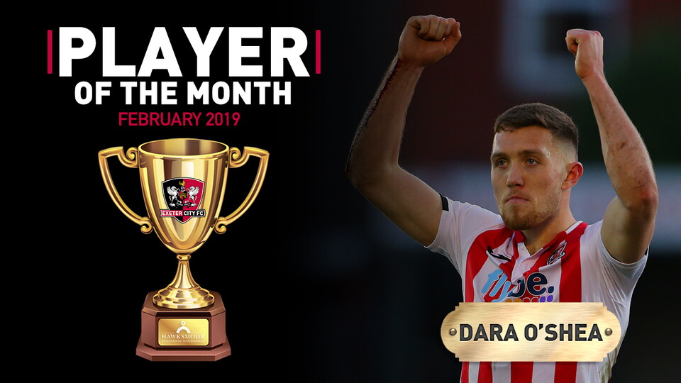 Exeter City defender Dara O'Shea has been voted your Hawksmoor Investment Management player of the month for February.