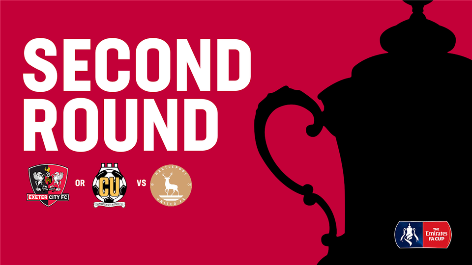 Exeter City or Cambridge United will face Hartlepool United at home in the Emirates FA Cup second round.