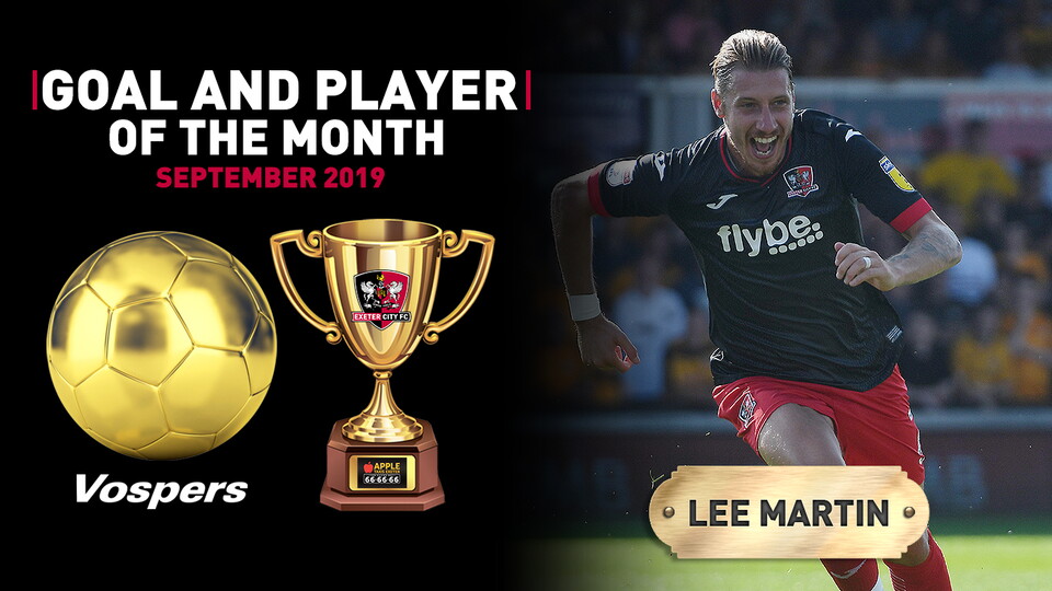 Exeter City midfielder Lee Martin has been voted both your Apple Taxis' player of the month and Vospers' goal of the month for September.