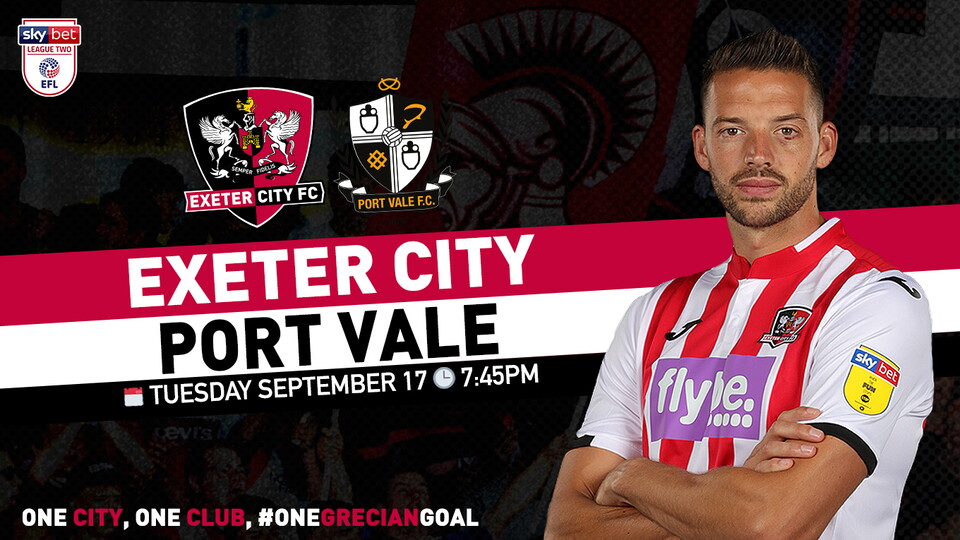 Exeter City are quickly back in action at the Park and under the lights against Port Vale on Tuesday, September 17 in a 7:45pm kick-off.