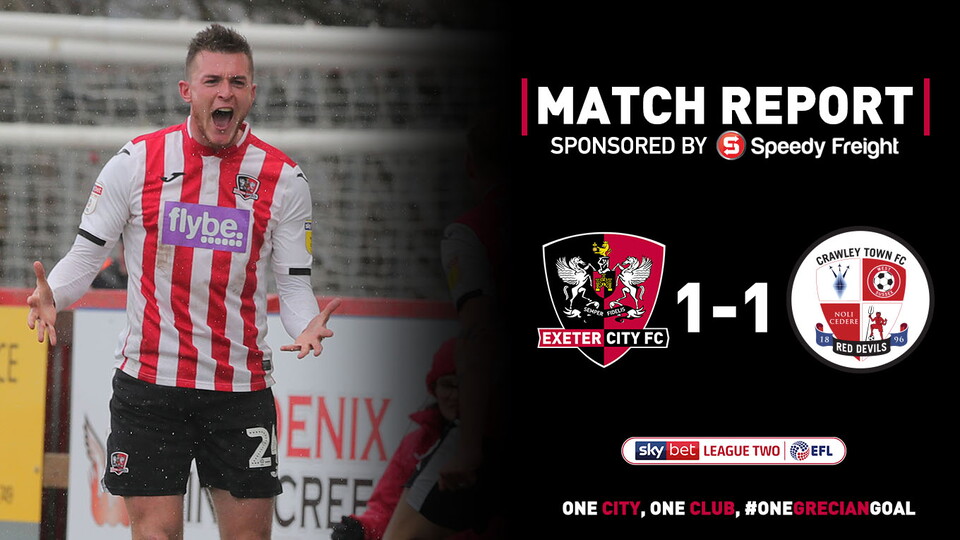 Exeter City fought back from a goal down to earn a point at home to Crawley Town.