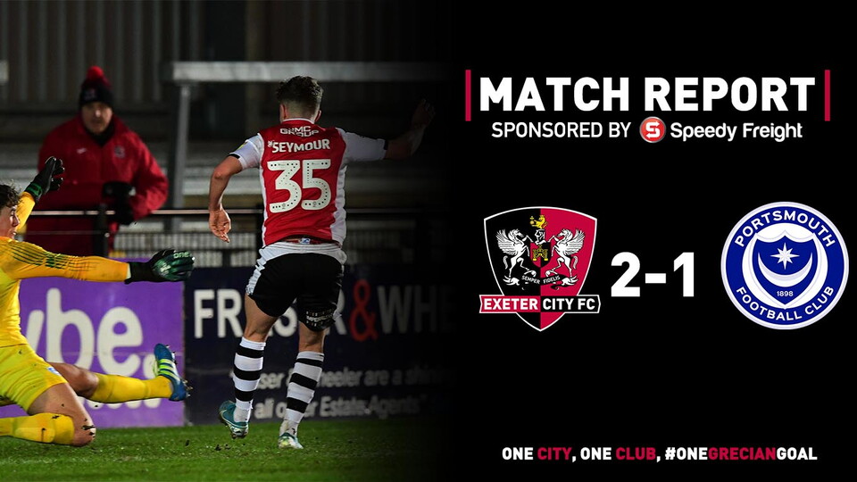 Exeter City moved back to the top of their Premier League Cup group stage as goals from Jordan Dyer and Ben Seymour gave them a 2-1 win over Portsmouth.