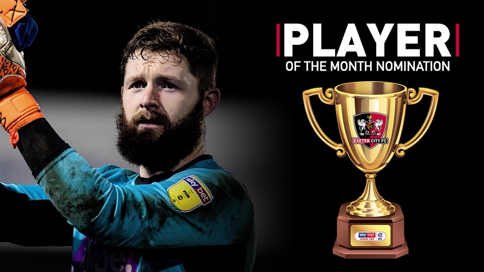 Exeter City goalkeeper Jonny Maxted has been nominated for the Sky Bet League Two player of the month award for January.