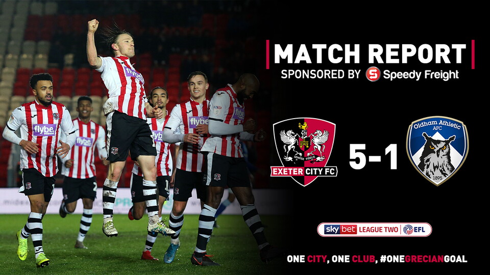 City took the lead after 20 minutes with the best move of the game up to that point, with Jayden Richardson finishing off a flowing home for the Grecians with a deft finish over Oldham goalkeeper Zeus de le Paz after Matt Jay had set him through.