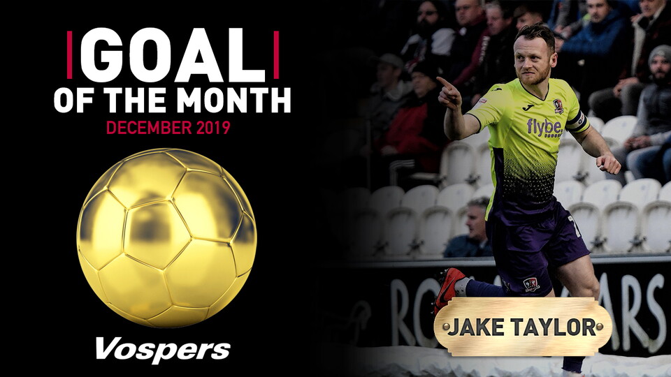 Exeter City captain Jake Taylor's match-winning goal against Colchester United on Sunday, December 29 has been voted YOUR Vospers' goal of the month for December.