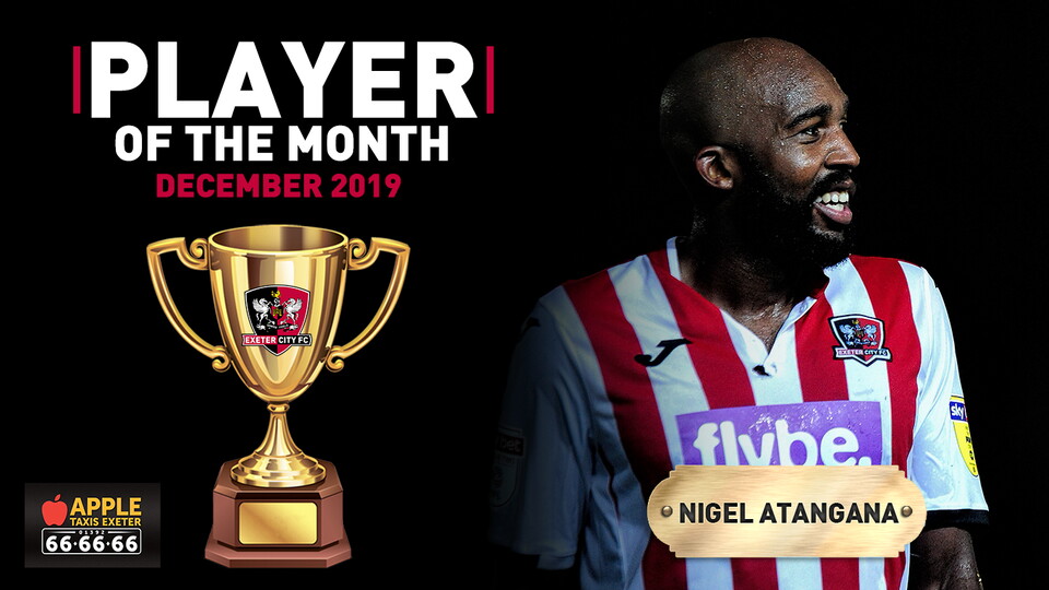 Exeter City midfielder Nigel Atangana has been voted YOUR Apple Taxis' player of the month for December.