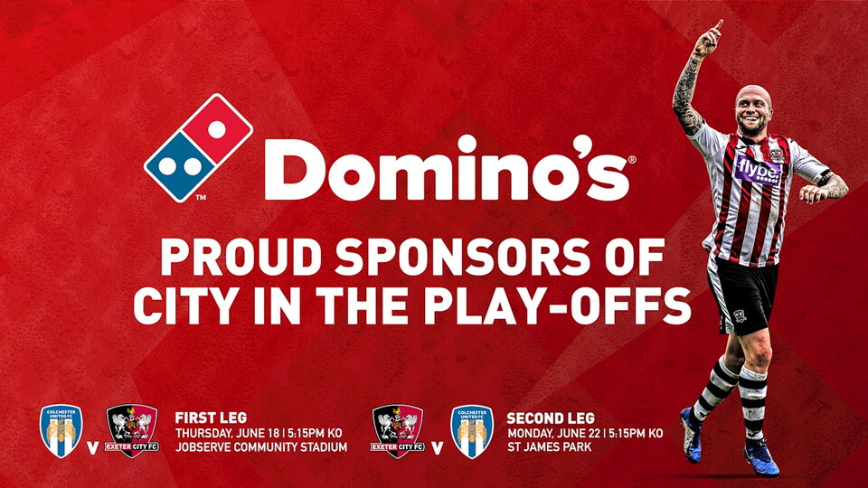 Exeter City FC is delighted to have Domino's Pizza as sponsors of the club's online activity in the play-offs.
