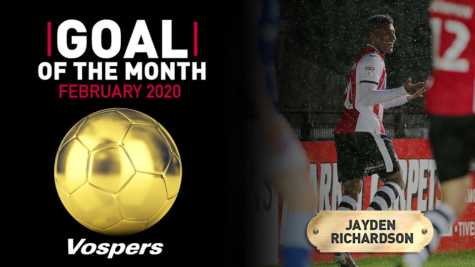 Jayden Richardson's sweet finish against Oldham athletic has been voted YOUR Vospers' goal of the month for February.