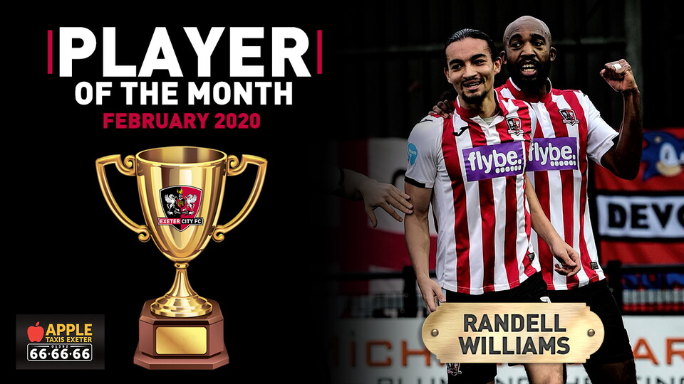 Exeter City winger Randell Williams has been voted YOUR Apple Taxis' player of the month for February.