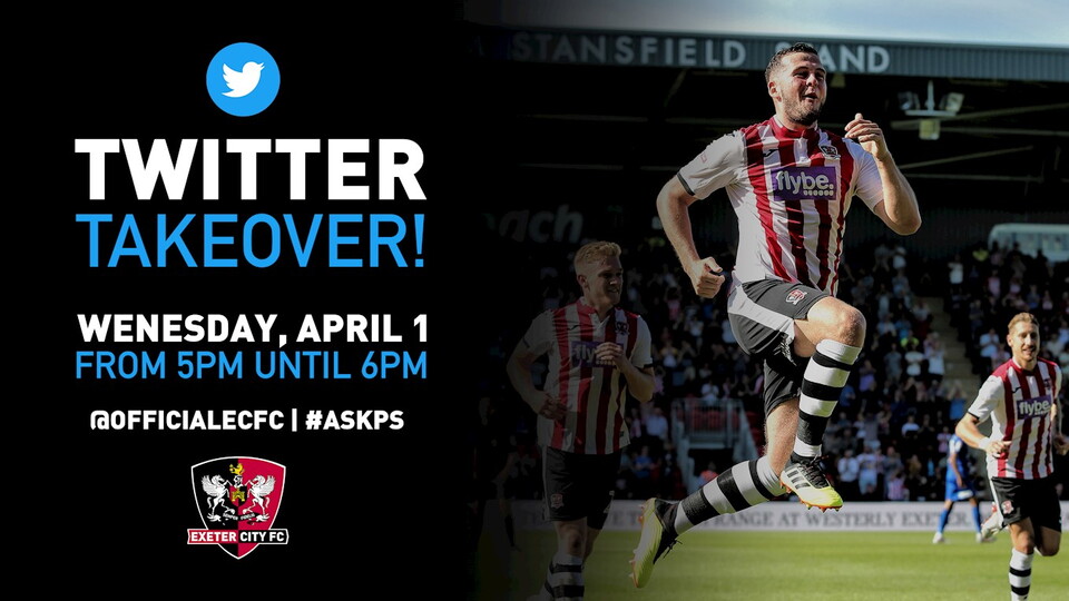 Exeter City defender Pierce Sweeney is next up to host a 'Twitter Takeover' on the club's official account on Wednesday, April 1.