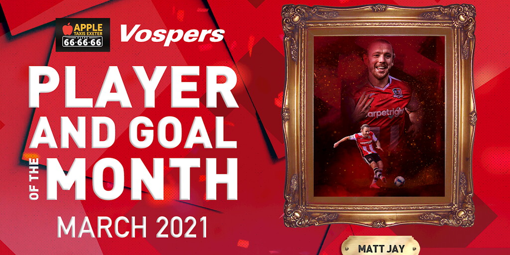 One of our Own, Matt Jay has been voted YOUR Apple Taxis Exeter Player of the Month, AND Vospers Goal of the Month for March.