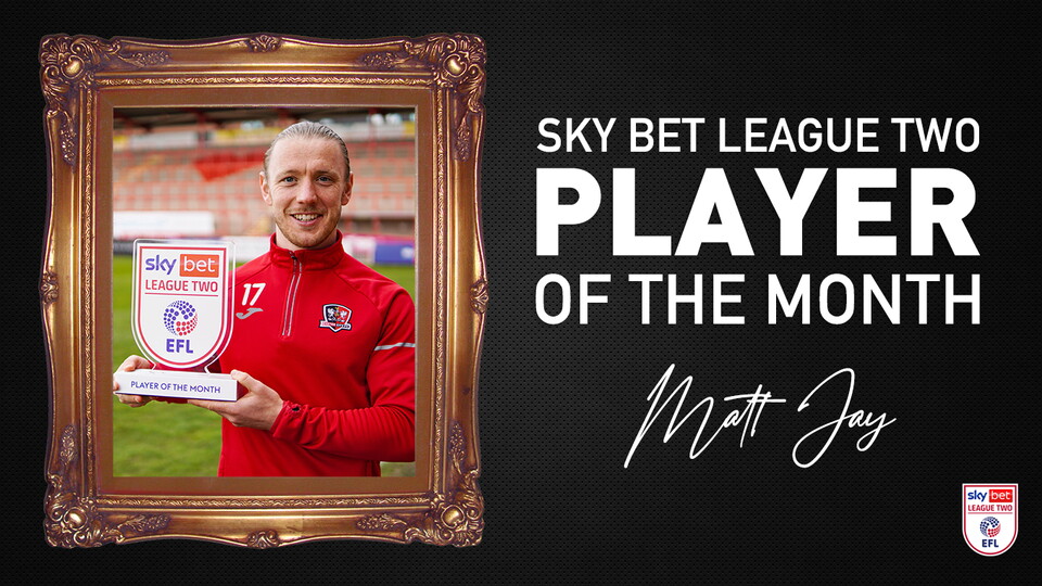 One of our Own, Matt Jay has won the Sky Bet League Two Player of the Month award for March.
