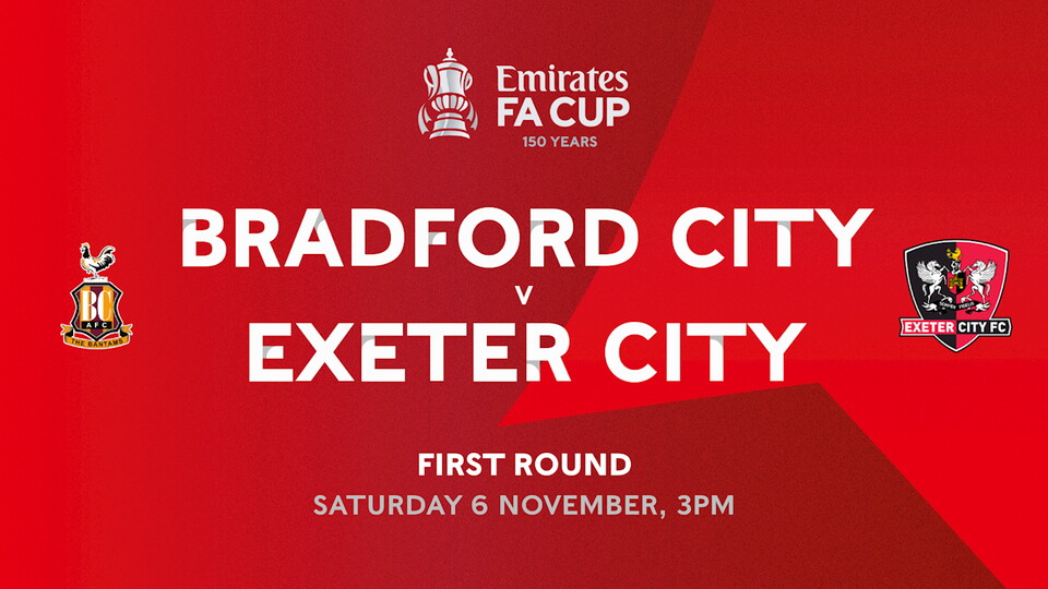 Tickets for our Emirates FA Cup First Round trip to Bradford City on Saturday 6 November are now available to purchase from your online account and via the club shop.